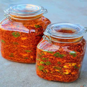 Mango Pickle Bottle, which is incredibly flavorful. We use Desi mangoes of the highest grade to make our mango pickles. To give it a mother-hand flavor, we use manually ground spices in the best ratio. Extreme care is done with hygiene. This